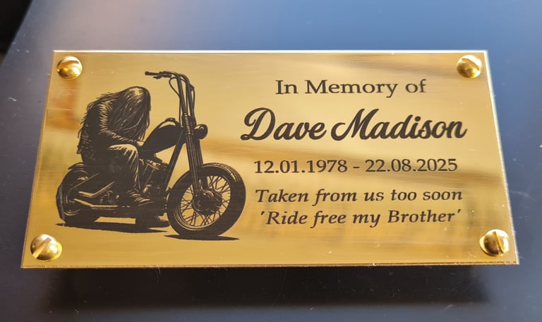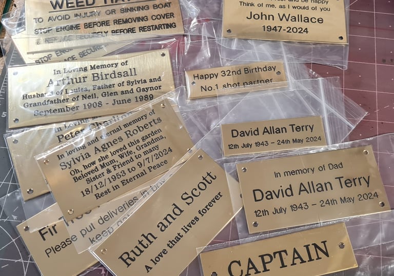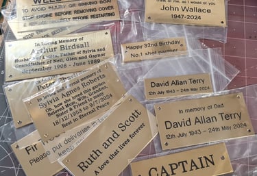 Whether you need a memorial bench plaque, a door nameplate, or a set of machine labels, we deliver fast, reliable service throughout the UK – all at competitive prices..